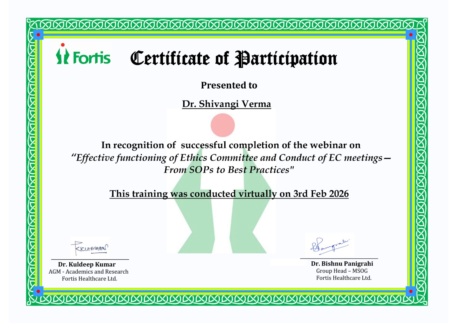 CERTIFICATE COURSE IN RESEARCH ETHICS AND ETHICS COMMITTEE FUNCTIONING